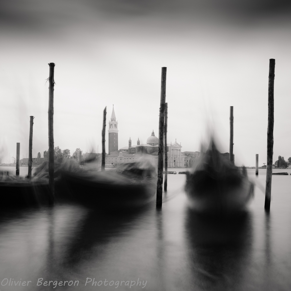 Two gondola – San Marco – Venice , long exposure, black and white landscape photography